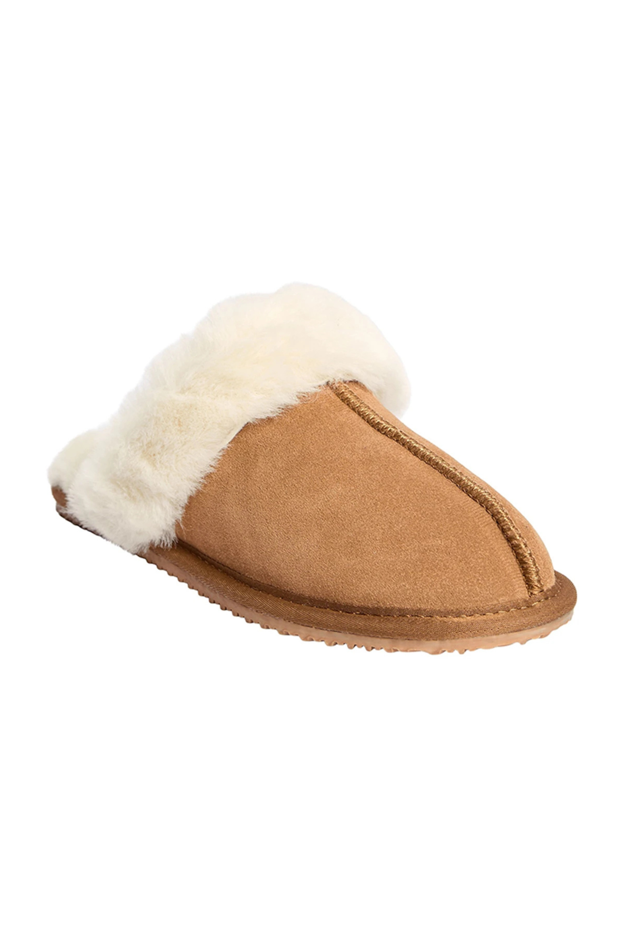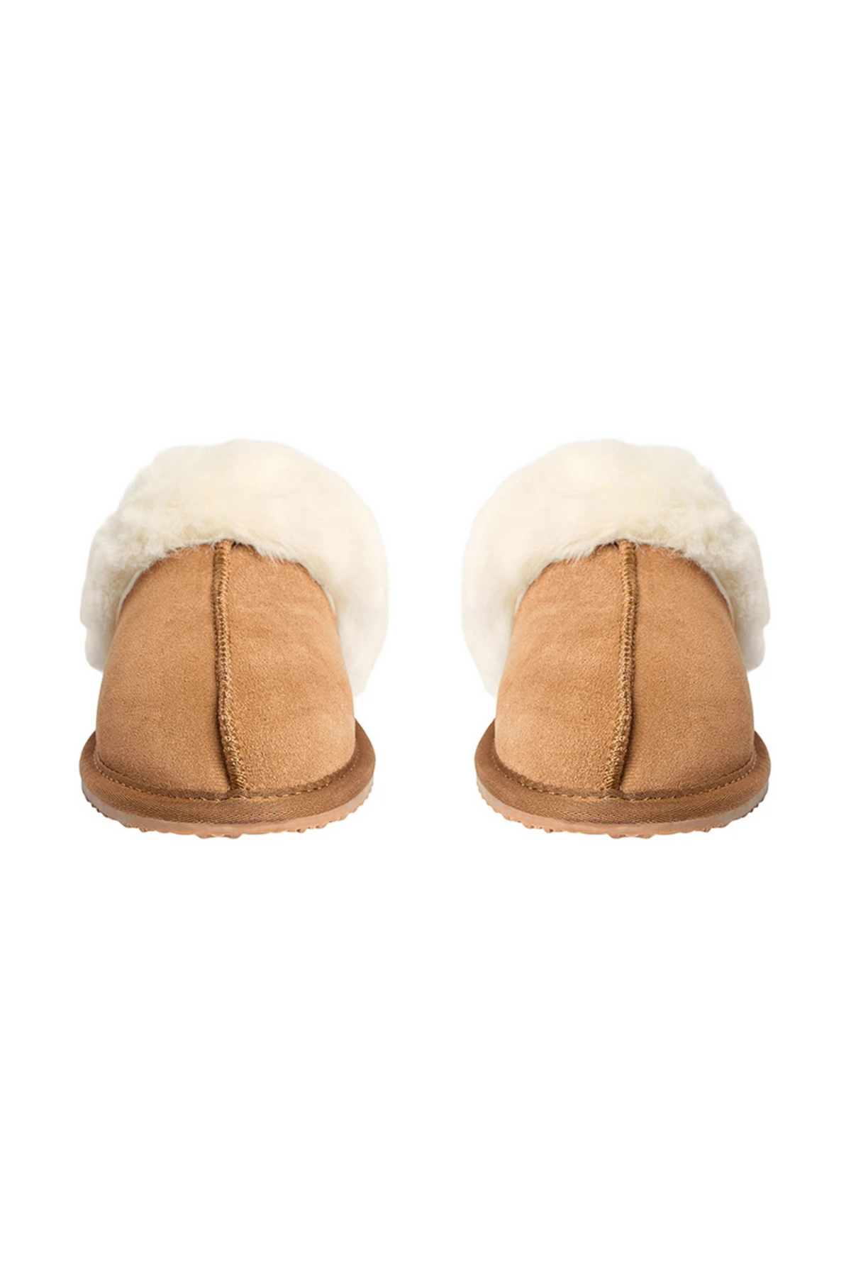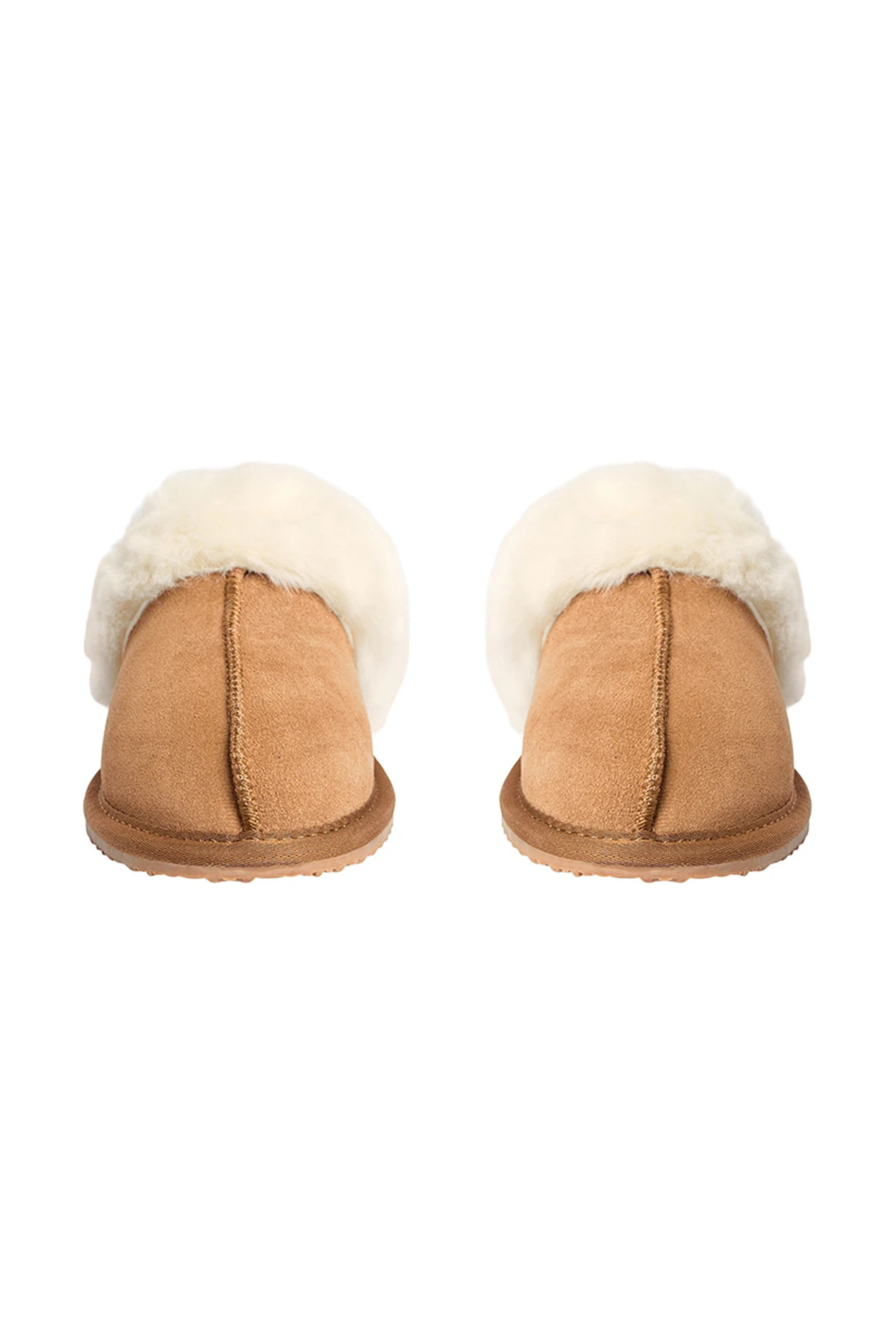 The Bettina slipper takes home comfort to a new level. Crafted from soft tan suede for a calm and natural look, the rich white sheepskin trim frames the foot with warmth and softness. Inside, the luxurious feel continues with 100% sheepskin, making every step light, warm and incredibly comfortable.